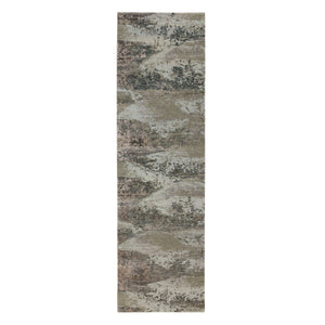2'8"x10' Gray Abstract Design Wool And Silk Runner Hand Knotted Oriental Rug FWR350688