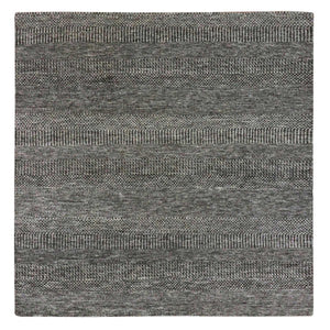 6'x6'1" Steel Gray, Undyed Pure Wool, Modern Grass Design, Hand Knotted, Tone On Tone, Square Oriental Rug FWR477564