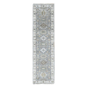 2'7"x10' Medium Gray, Karajeh And Geometric Design, Natural Wool, Hand Knotted, Runner Oriental Rug FWR508272