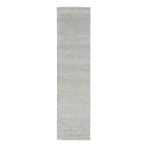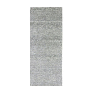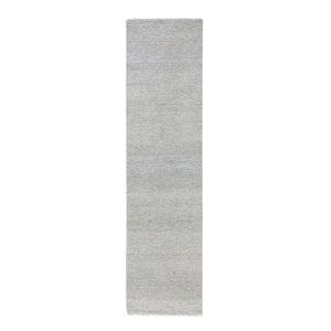 2'6"x10'2" Gainsboro Gray, 100% Undyed Wool, Hand Knotted, Tone On Tone, Modern Grass Design, Runner Oriental Rug FWR477270