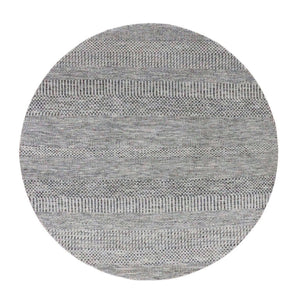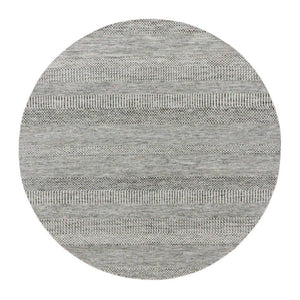 6'x6' Perfect Gray, Natural Undyed Wool, Modern Grass Design, Hand Knotted, Tone On Tone, Round Oriental Rug FWR477396