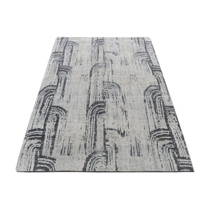 4'x6'3" Ash Gray, The Cane Design, Pure Silk With Textured Wool, Hand Knotted, Oriental Rug FWR523308