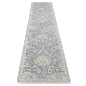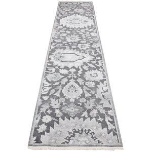 2'6"x10'2" Ash Gray, Oushak Influence, Silk With Textured Wool, Hand Knotted, Runner Oriental Rug FWR523722