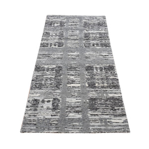 2'6"x10' Thunder Gray, Modern Abstract Design, Wool And Silk, Hi-low Pile, Hand Knotted, Runner Oriental Rug FWR523662