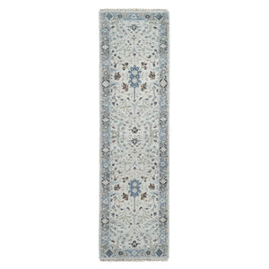 2'6"x9'10" Pastel Gray, Oushak With Floral Motifs, Natural Wool, Denser Weave, Hand Knotted, Runner Oriental Rug FWR508626