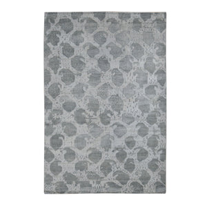 3'1"x5' Gainsboro Gray, Wool And Silk, Hand Knotted Abstract With Fire Mosaic Design, Persian Knot, Oriental Rug FWR508458