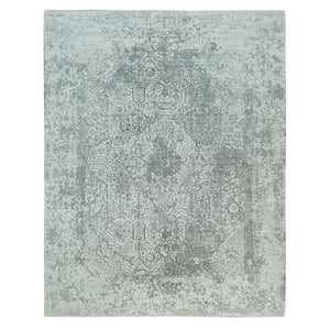 8'x10'1" Pale Smoke And Trout Gray, Hand Knotted, Broken Wool And Silk Persian Design, Oriental Rug FWR541200
