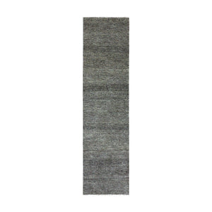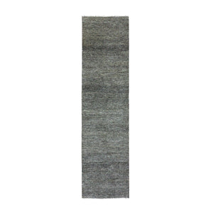 2'6"x10' Harbor Gray With Grease Black, Modern Grass Design, Hand Knotted, Pure Undyed Wool, Tone On Tone, Oriental Runner Rug FWR478236