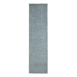2'6"x10' Pastel Gray, Tone On Tone, Hand Knotted, Modern Undyed 100% Wool Grass Design, Runner Oriental Rug FWR478230