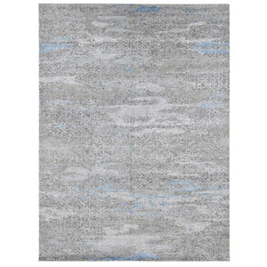 9'x12'3" Cadet Gray, Wool With Real Silk, Broken And Erased Intricate Contemporary Design, Hand Knotted, Oriental Rug FWR526218