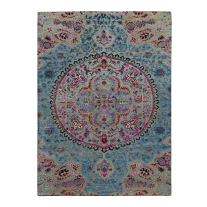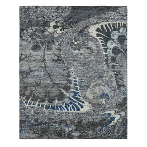8'x10' Thunder Gray, Sari Silk And Textured Wool, Colorful Maharaja Design, Hand Knotted, Oriental Rug FWR526242