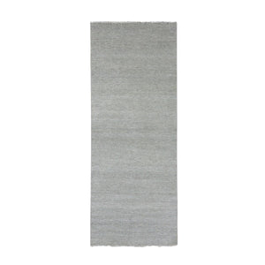 2'7"x26'3" Goose Gray, Tone On Tone, Undyed 100% Wool, Hand Knotted Modern Grass Design, Xl Runner Oriental Rug FWR478206