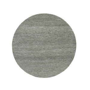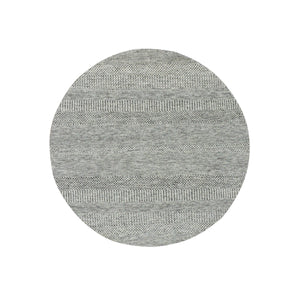 6'x6' Goose Gray, Modern Grass Design, Tone On Tone Natural Hand Knotted Undyed Wool, Oriental Round Rug FWR478170