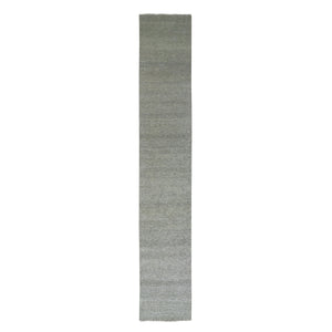 2'5"x29'7" Heather And Camouflage Gray, Undyed Organic Wool Grass Design, Tone On Tone, Hand Knotted Xl Runner Oriental Rug FWR478506