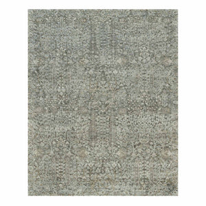 8'1"x10'1" Laid Back Gray, Willow And Cypress Tree Design, Silk With Textured Wool, Hand Knotted, Oriental Rug FWR541314