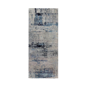 2'5"x7'9" Wool & Silk Abstract Design Modern Silver, Blue Hand Knotted Oriental Runner Rug FWR350934