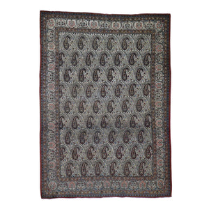 6'3"x8'9" Ivory Antique Persian Qum Good Condition Paisley Design Hand-knotted Fine Oriental Rug FWR269634