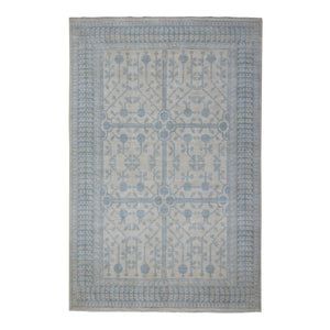 5'10"x9'1" White Wash Khotan With Pomegranate Garden Design Hand Knotted Oriental Rug FWR325746