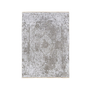 4'2"x6' Broken Persian Design Wool And Pure Silk Hand Knotted Ivory Oriental Rug FWR379098