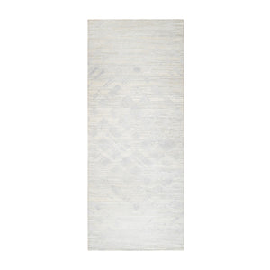 4'1"x10'1" Modern Design Hand Spun Undyed Natural Wool Hand Knotted Ivory Oriental Wide Runner Rug FWR380262