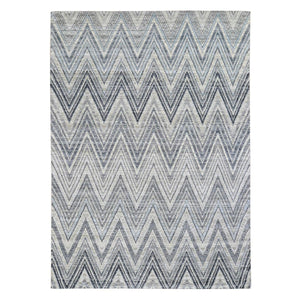 9'1"x12'3" Ivory Chevron Design Textured Wool And Pure Silk Hand Knotted Modern Oriental Rug FWR401058
