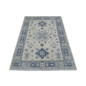 3'9"x5'9" Ivory Vintage Look Kazak With Large Medallions Design Organic Wool Hand Knotted Oriental Rug FWR415812