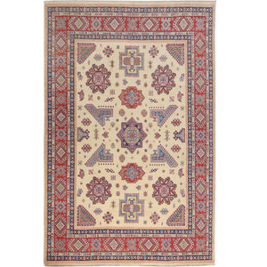 4'x5'6" Ivory Special Kazak Tribal Design Pure Wool Hand Knotted Oriental Rug FWR342474