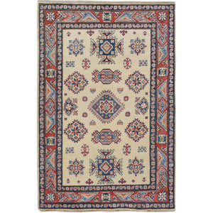 3'10"x6' Ivory Special Kazak Geometric Design Pure Wool Hand Knotted Oriental Rug FWR342486