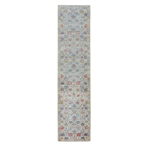 2'7"x12' Colorful Silk With Textured Wool Tabriz Design Runner Hand Knotted Oriental Rug FWR349134