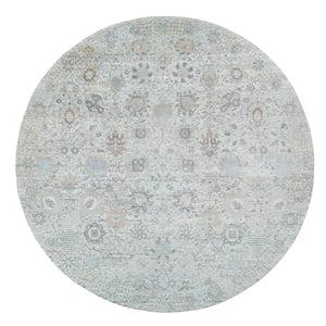 14'x14' Ivory, Tabriz Vase With Pomegranate Design, Silk With Textured Wool Hand Knotted, Round Oriental Rug FWR389466