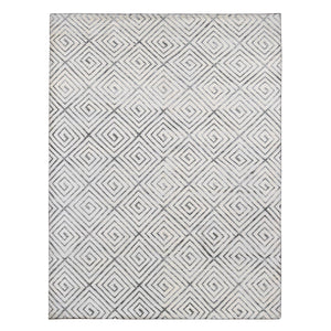 9'x12' Ivory, Roman Key Squares Design, Hand Knotted, Pure Silk With Textured Wool, Modern, Oriental Rug FWR482682