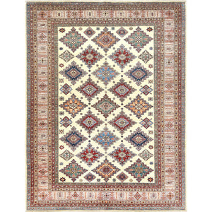 9'3"x12' Ivory, Afghan Super Kazak With Geometric Medallions, Natural Dyes Densely Woven, Natural Wool Hand Knotted, Oriental Rug FWR494280