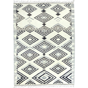 4'x6'4" Ivory, Moroccan Berber Influence With Geometric Medallions , Natural Dyes, Extra Soft Wool, Hand Knotted, Oriental Rug FWR497862