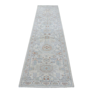 2'6"x9'10" White Wash Peshawar 100% Wool Hand Knotted Runner Oriental Rug FWR330882