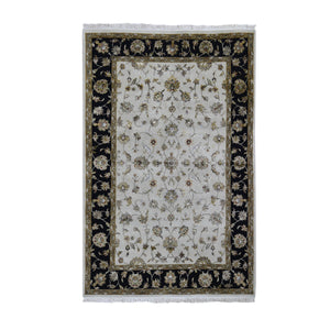 6'x9'3" Black Half Wool And Half Silk Thick And Plush Rajasthan Hand Knotted Oriental Rug FWR354096
