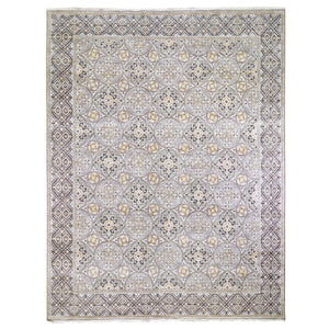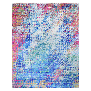 8'10"x12'1" Ivory Large Elements With Pastels Silk With Textured Wool Modern Rug FWR355554