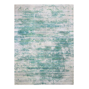8'10"x12' Sari Silk With Textured Wool Green Erased Chevron Design Oriental Rug FWR355344