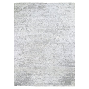 8'10"x12' Ivory Silk With Textured Wool Dimensional Design Hand Knotted Oriental Rug FWR355488
