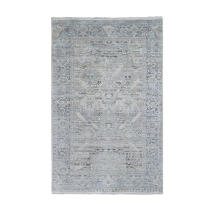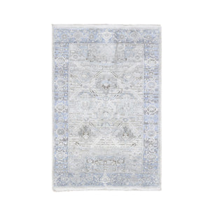 2'x3'1" Dimensional Curtains Gray Silk With Textured Wool Oriental Rug FWR355668