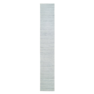 2'8"x13'10" Ivory, Pure Wool, Vegetable Dyes, Hand Loomed, Plain Modern Striae Design, Runner Soft Pile, Oriental Rug FWR393420