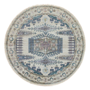 9'9"x9'9" Ivory, Extra Soft Wool, Hand Knotted, Thick And Plush, Reimagined Persian Viss Design, Tone On Tone, Natural Dyes, Round, Oriental Rug FWR393816