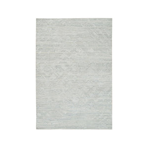 6'x9'3" Ivory And Light Grey, Modern Pattern, Hand Spun Undyed Natural Wool, Hand Knotted, Oriental Rug FWR393852