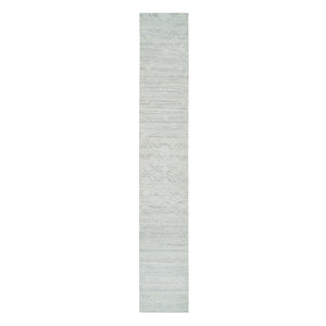 2'6"x16' Ivory And Light Grey, Hand Spun Undyed Natural Wool, Modern Design, Hand Knotted, Xl Runner Oriental Rug FWR393864
