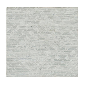 6'1"x6'1" Ivory And Light Grey, Hand Knotted, Hand Spun Undyed Natural Wool, Modern Design, Square Oriental Rug FWR393948
