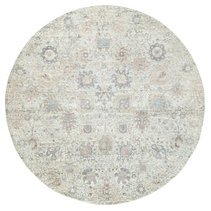 11'10"x11'10" Ivory Silk With Textured Wool Tabriz Hand Knotted Oriental Round Rug FWR353874