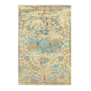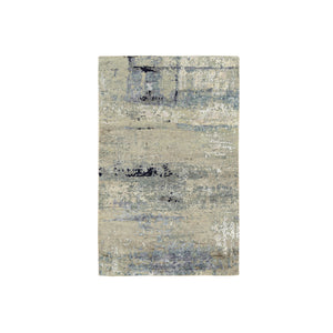 3'x5' Ivory Abstract Design Wool And Silk Hand Knotted Oriental Rug FWR373002