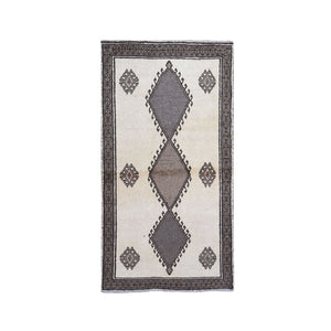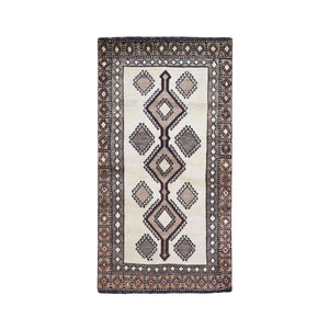 3'6"x6'10" New Persian Gabbeh Geometric Design Ivory Undyed Natural Wool Hand Knotted Oriental Rug FWR359070