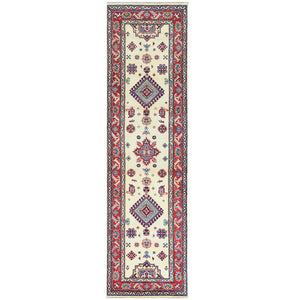 2'8"x9'8" Ivory Geometric Design Special Kazak Hand Knotted Pure Wool Oriental Runner Rug FWR364350