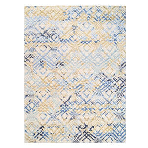 9'x12' Yellow And Ivory Supple Collection Modern Oceanic Square Design Pure Wool Hand Knotted Oriental Rug FWR373314