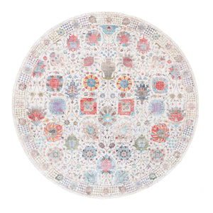 10'1"x10' Colorful Silk With Textured Wool Tabriz Vase And Flower Design Hand Knotted Oriental Round Rug FWR373632
